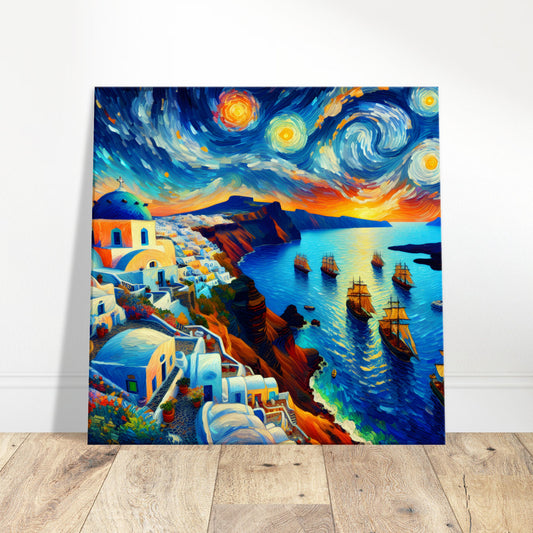Santorini Caldera Glow Oil Painting Canvas Print